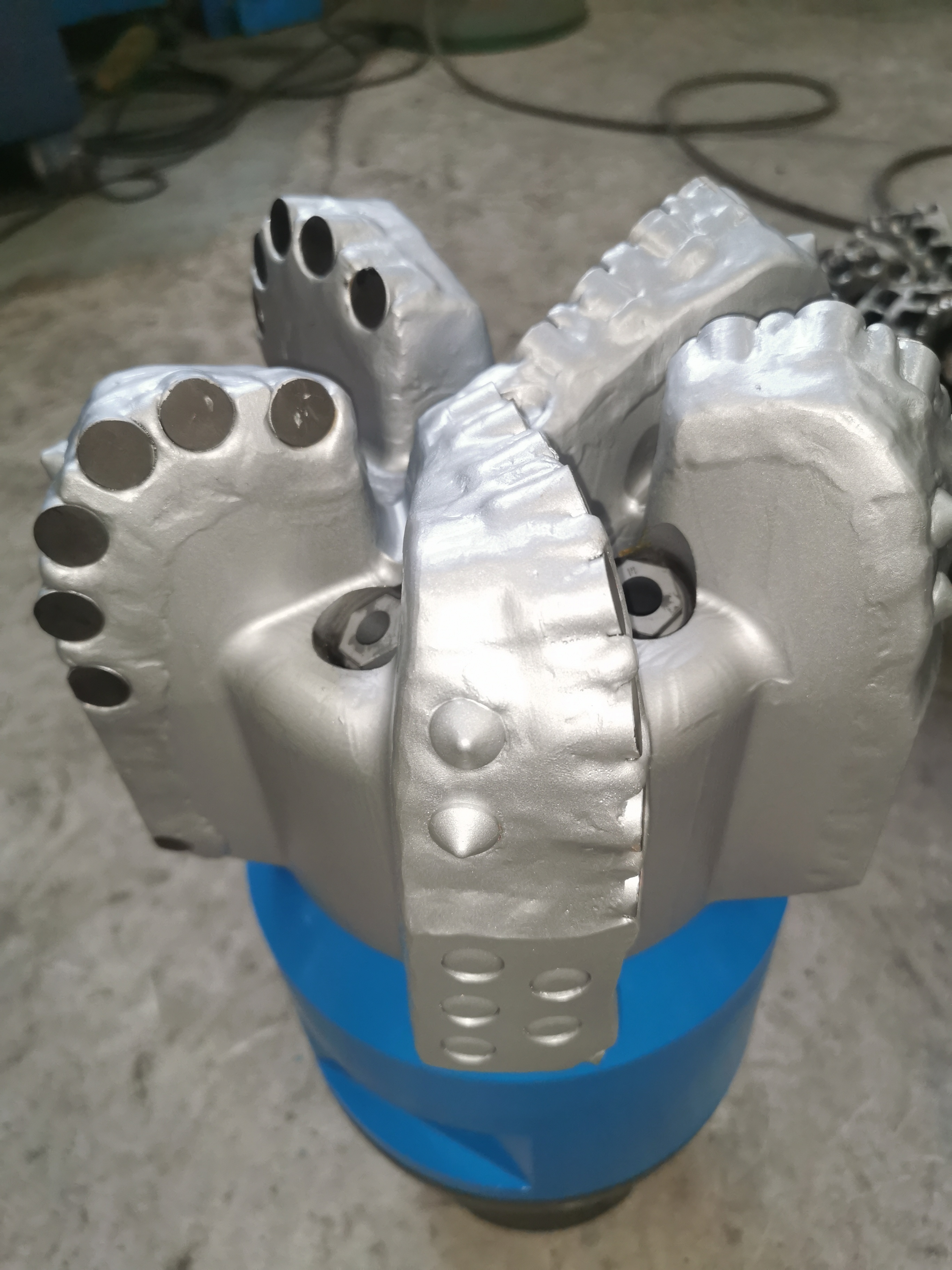 Drill bit sproeiers helpen het snijgebied schoon te maken en de polycrystalline diamantencomposite (PDC) snijmachines af te koelen.